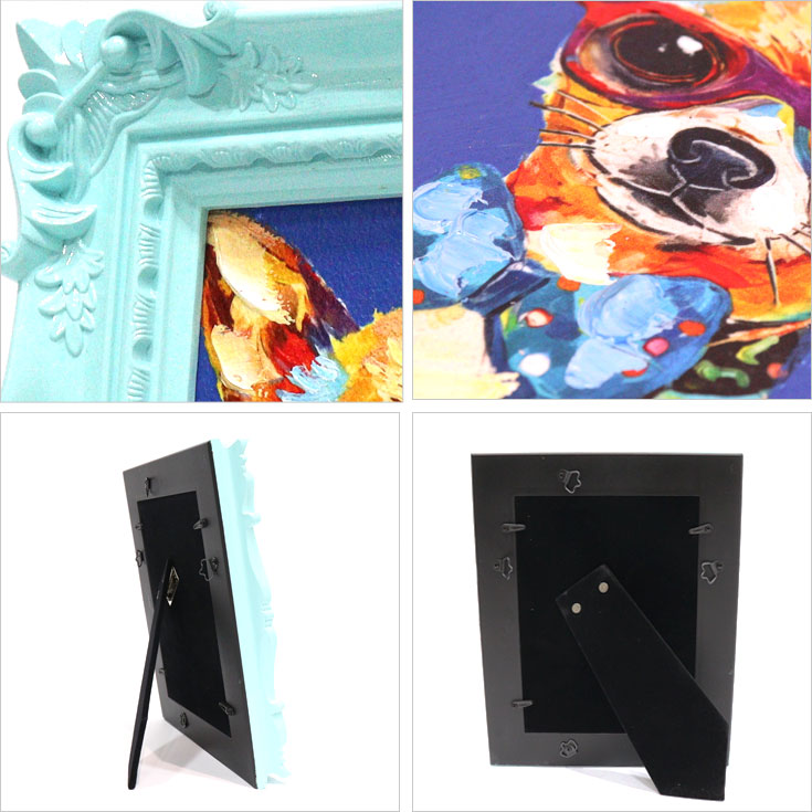 オイル ペイント アート ポルカドット ブルー デコフレーム シリーズ OP-05807 送料無料 犬 イヌ ドッグ チワワ 動物 壁掛け