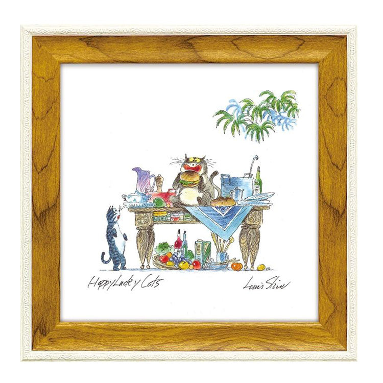 ルイ・シン アートフレーム グルメ キャット LS-03204 猫 動物 食べ物 アート おしゃれ 壁掛け 絵画 版画 額縁 アニマル イラスト