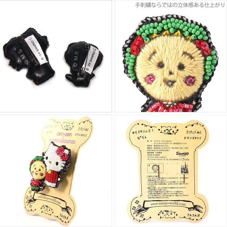 刺繍 ミニブローチ コジコジ ハローキティ ブローチ メール便 送料無料 MBC3863 タマオワールド サンリオ ビーズ アクセサリー COJI-COJI × HelloKitty