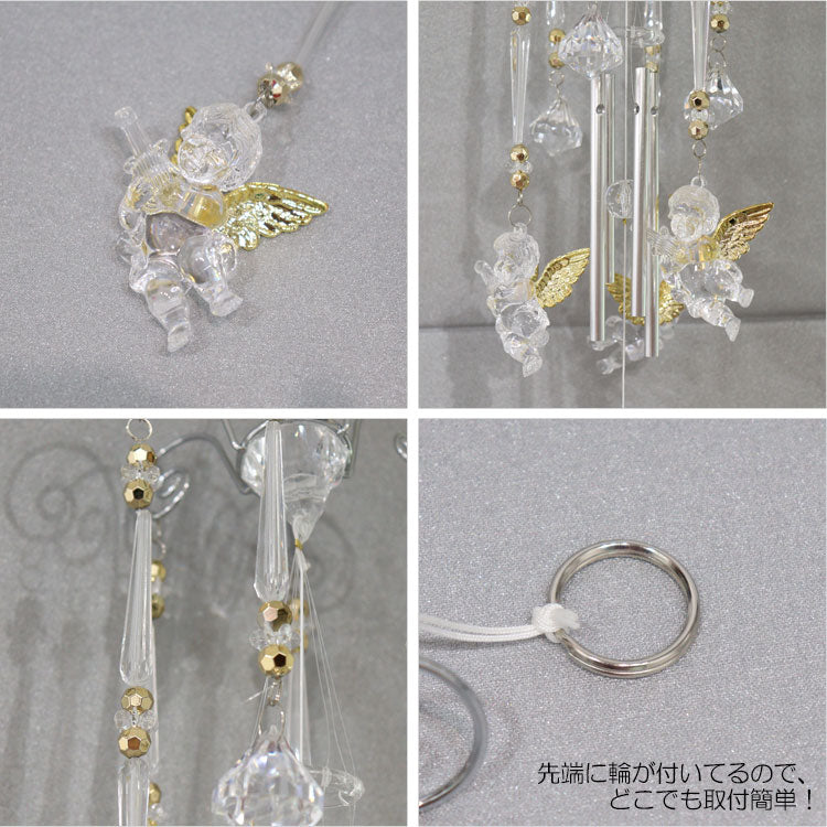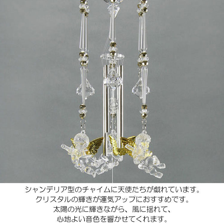 シャンデリア型のチャイムに天使たちが戯れています。クリスタルの輝きが運気アップにおすすめです。