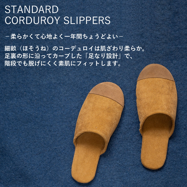 素足にやさしくフィットする細畝(ほそうね)のコーデュロイ。