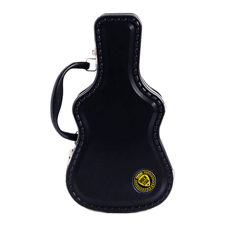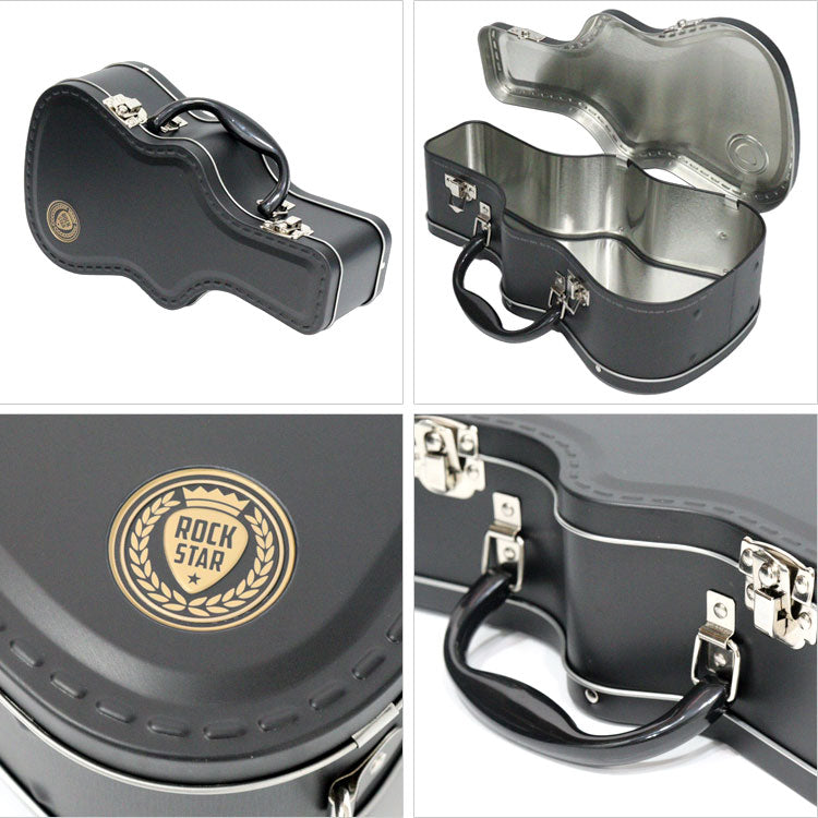 ギターケースのような形をしたレトロなモチーフのブリキ缶。