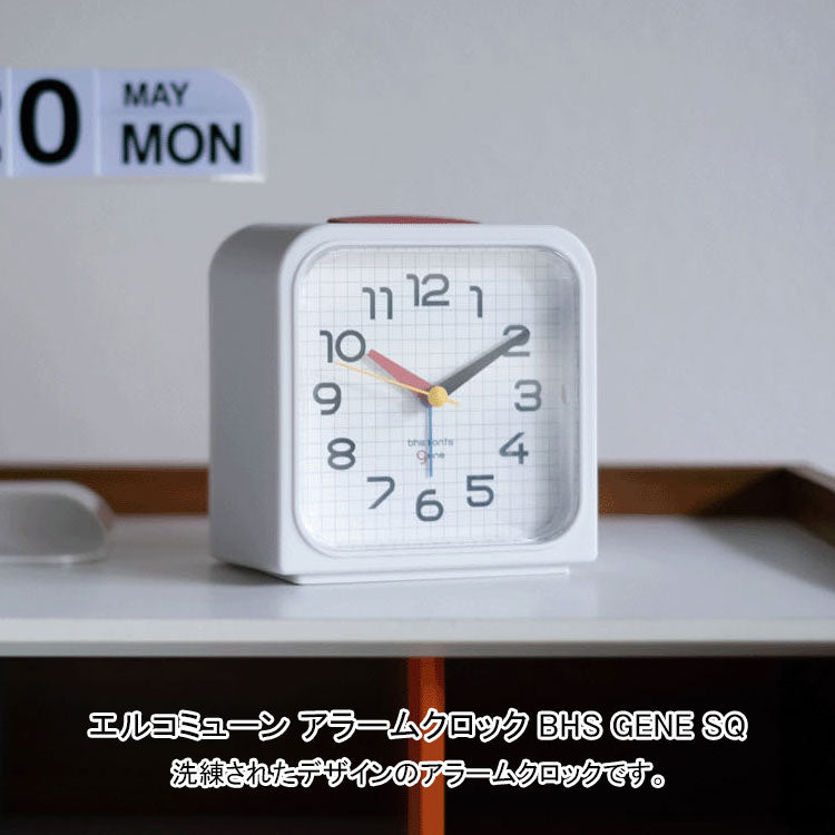 エルコミューン アラームクロック BHS GENE SQ DCL-005 DCL-006 送料無料 置時計 時計 クロック 四角 おしゃれ アラーム スヌーズ 機能付ホワイト