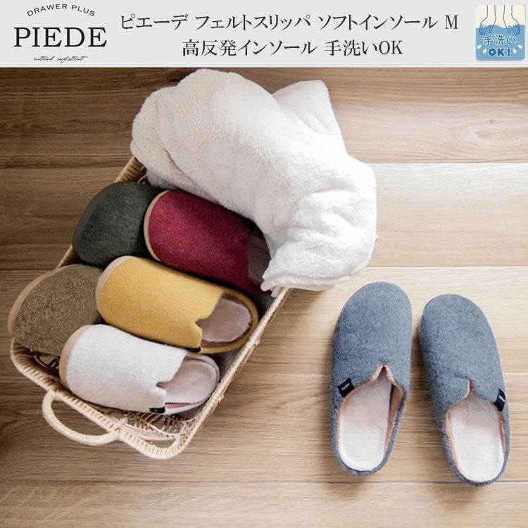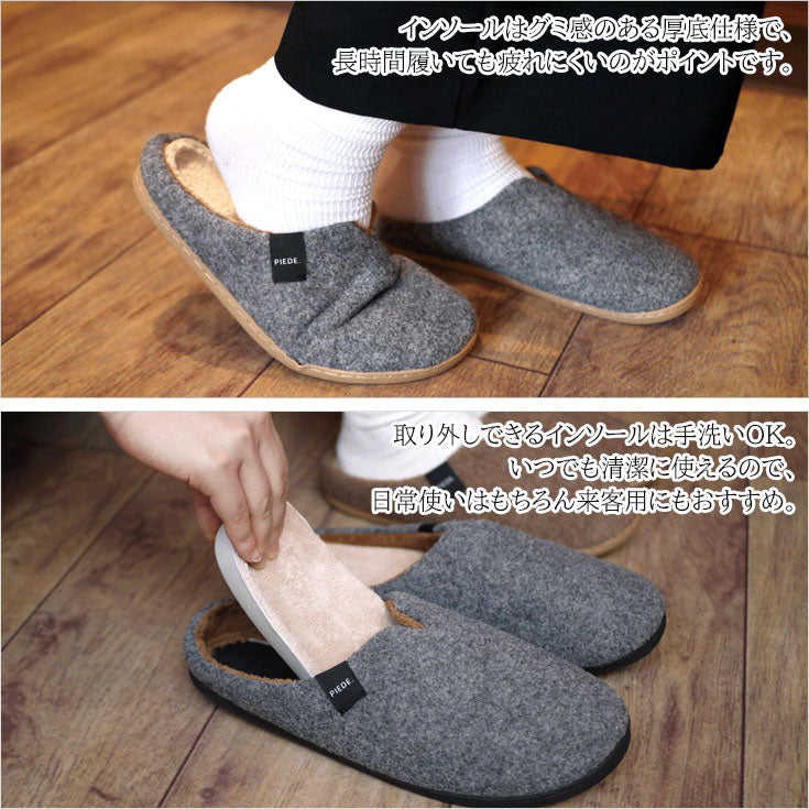 ピエーデ フェルト スリッパ ソフトインソール M 高反発インソール 手洗いOK あったか 室内履き ギフト対応 PIEDEグレー