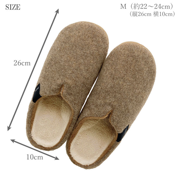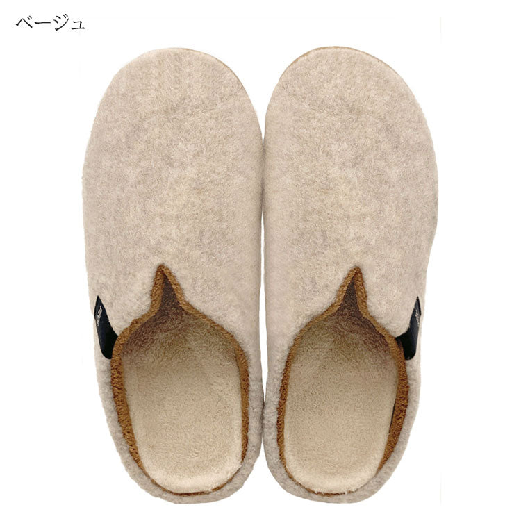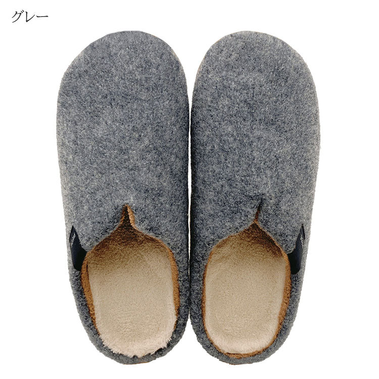 ふんわりフェルト素材と厚みのあるインソールが、足元をやさしく包み込む人気の室内スリッパです。