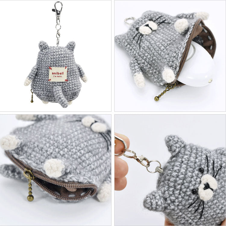 anibell カバー付き 防犯ブザー A740 定形外 送料無料 防犯ベル ブザー あみぐるみ ぬいぐるみ キーホルダー バッグチャーム 動物キャット