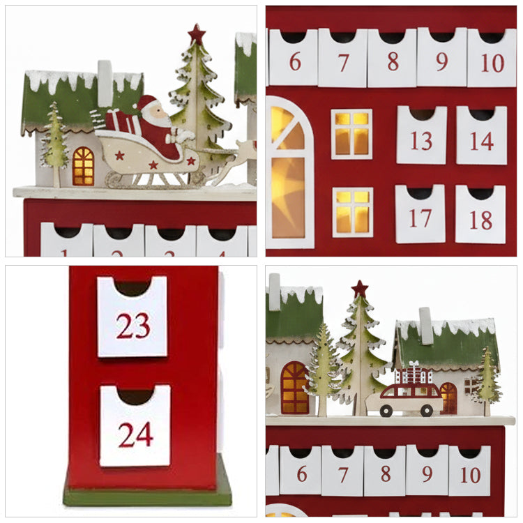 クリスマス LED ウッド アドベント カレンダー ハウス レッド c-20012 118-341 xmas 引き出し プレゼントアドベントカレンダー