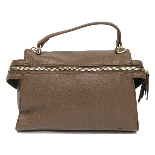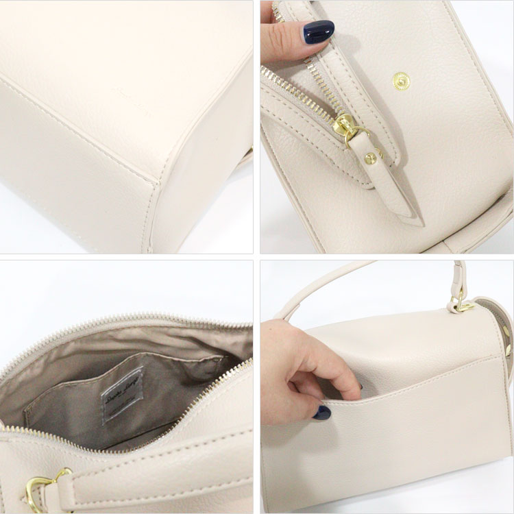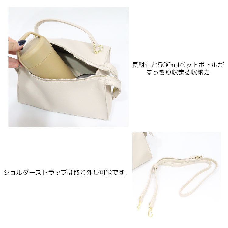 ゴールド金具と本革風生地の組み合わせで、シンプルなコーディネートでも上品さが際立ちます。