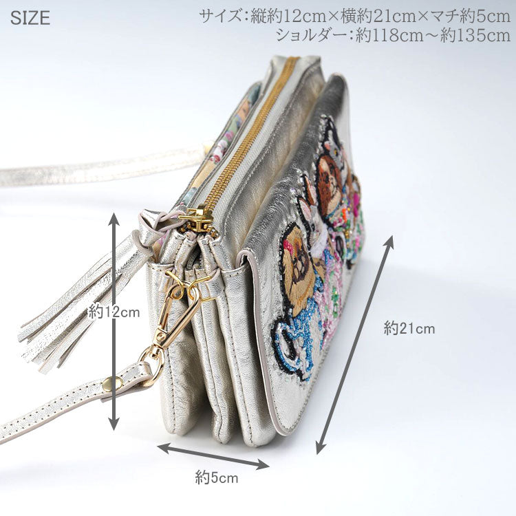お財布ポシェット Afternoon tea animal SHO3849 送料無料 タマオワールド ショルダーバッグ 犬 ウサギ 猫 革 財布 バッグ ポーチ 刺繍 動物 ティーカップ