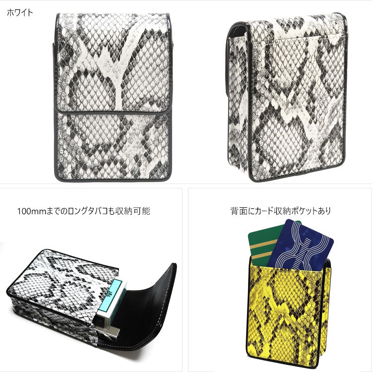 おしゃれなパイソン柄の「マグネットシガレットケース20(3-07057)」は、100mmまでのロングタバコも収納可能。