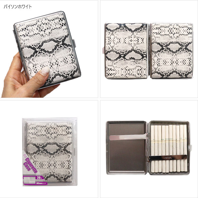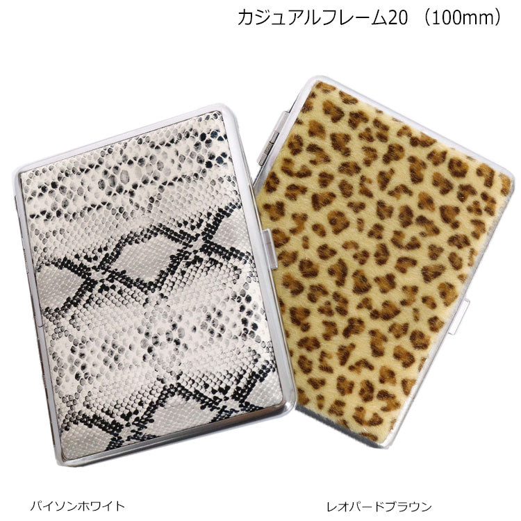 カジュアルフレーム 20 100mm 定形外 送料無料 たばこケース シガレットケース スリム 20本収納 ヒョウ柄 パイソン柄 アニマル柄 おしゃれ カードケースにも 喫煙グッズ レディース メール便パイソンホワイト