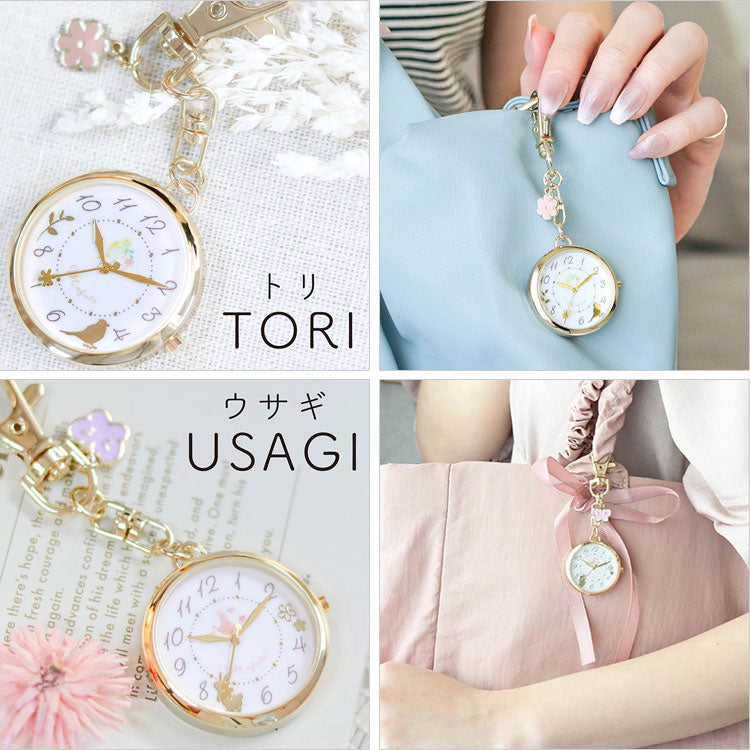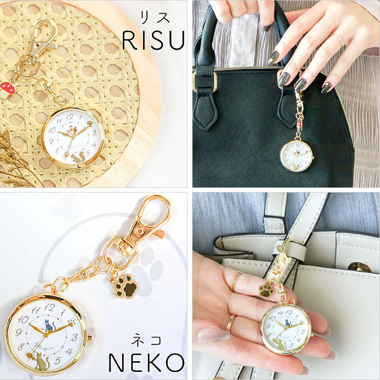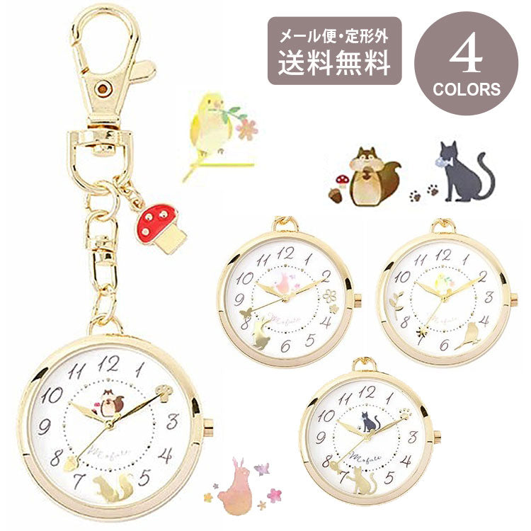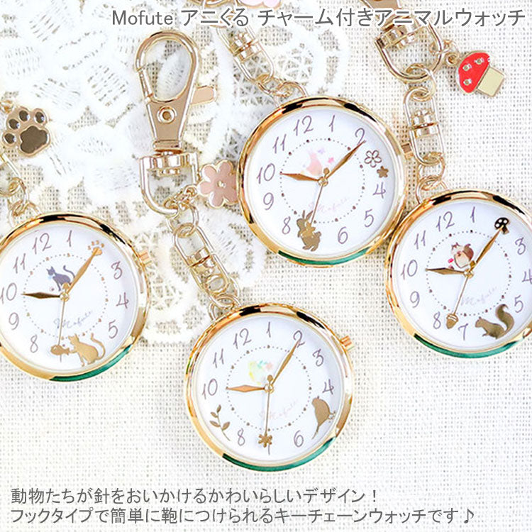 Mofute アニくる チャーム付き アニマルウォッチ 懐中時計 キーチェーン ウォッチ JN045 定形外 送料無料 アニマル 時計 鳥 ウサギ 兎 リス 猫 ネコ かわいい