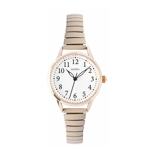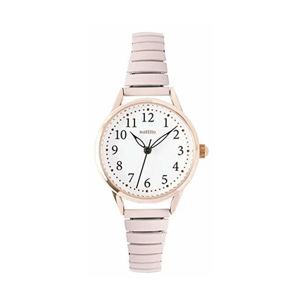 着脱が簡単で手首にやさしい、柔らかいジャバラベルトの腕時計。金具を使わないので痛くなりにくく、スムーズに装着できます。見やすい文字盤で時間確認もラクラク。落ち着いたニュアンスカラーとシンプルなデザインは、どんなスタイルにも自然にマッチします。日常使いからお仕事まで幅広く活躍する、実用的でおしゃれなアイテムです。