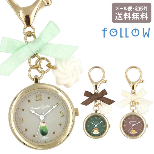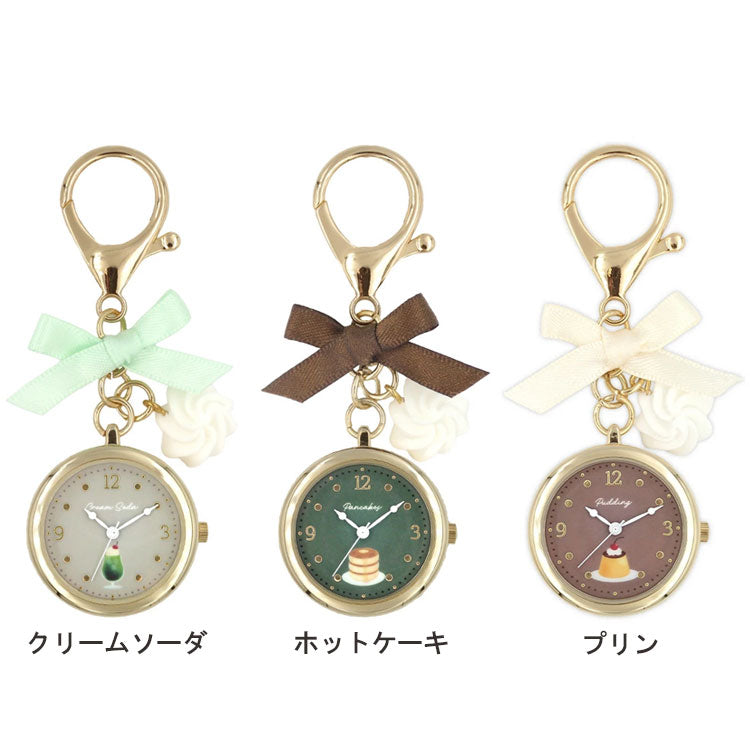 喫茶スイーツチャームウォッチ 時計 定形外 送料無料 N03525A-0 バッグチャーム キーホルダー アクセサリー ウォッチ クオーツ時計 喫茶店 プリン ホットケーキ クリームソーダ リボン かわいい 学生 クリームソーダ