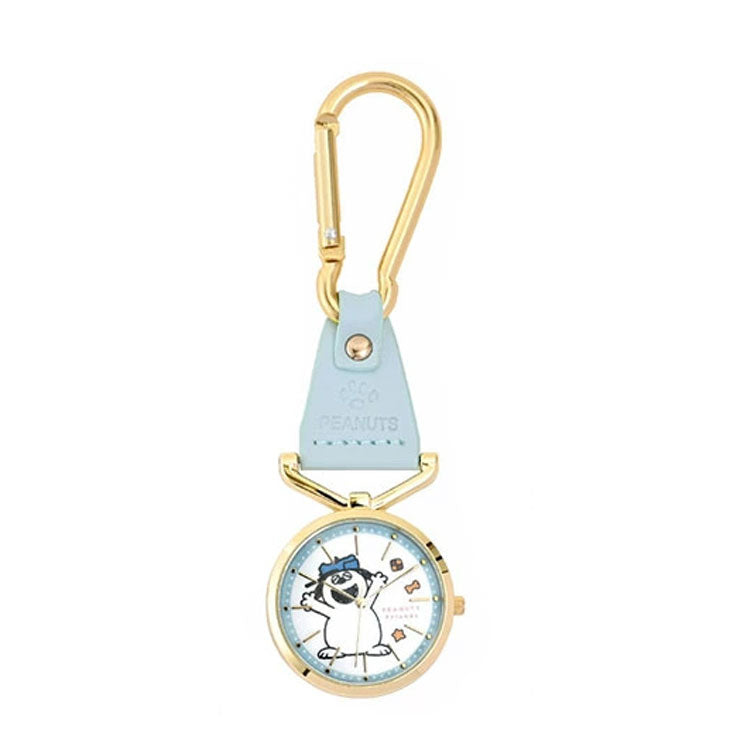 スヌーピー達の可愛いアートがポイントの、バッグやベルトループに取り付けられるカラビナタイプのウォッチです。