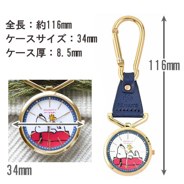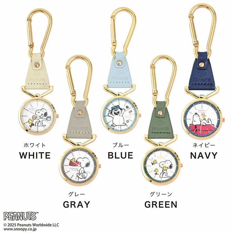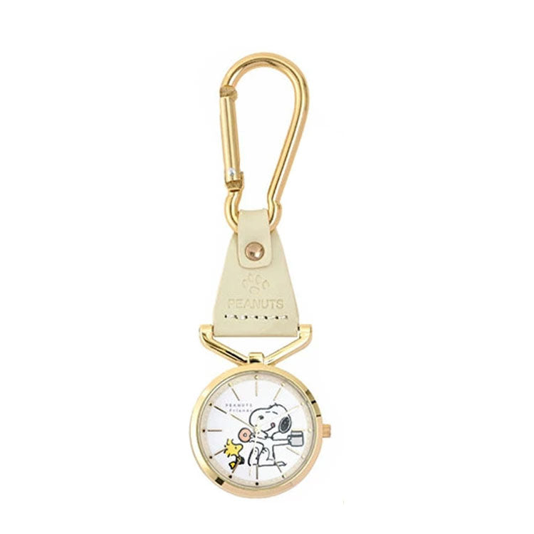 カラビナ レザー ウォッチ スヌーピー PNT058 定形外 送料無料 PEANUTS オラフ ウッドストック チャーリーブラウン 時計 懐中時計 チャームウォッチ キーホルダー ナースウォッチ パッケージ付き ギフト ホワイト