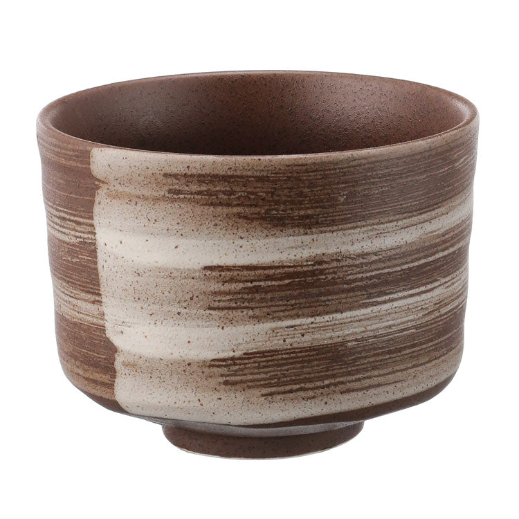 筒形(つつなり)胴が真っ直ぐな円筒形の抹茶茶碗。見込みが深い事が特徴で茶が冷めにくいことから冬の抹茶碗として用いられます。小さめの茶筅と茶灼とのセットでお作法に拘らず、もっと気軽にお茶を点てる所作を愉しんでいただきたい逸品。