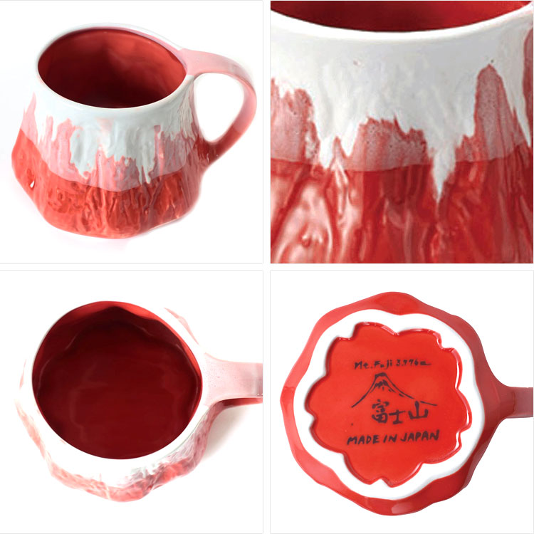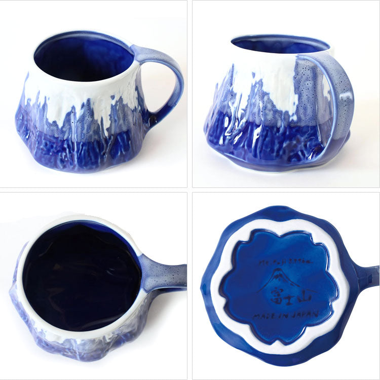 手作りのあたたかみを感じる山肌の質感と、富士山をイメージした美しい塗り分けが特徴のマグカップです。