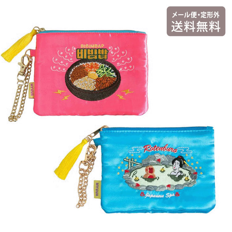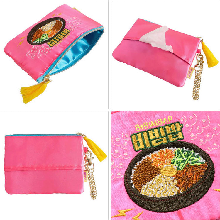 MYUUA ミューア 韓国ビビンバ 温泉 ティッシュポーチ ポーチ 定形外 送料無料 韓国風 レトロ 小物入れ 財布 小銭入れ 収納 サテン ギフト韓国ビビンバ(ピンク)