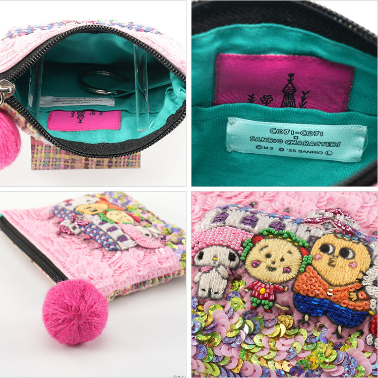 コジコジとサンリオキャラクターズが刺繍された、ミニサイズのマルチポーチです。