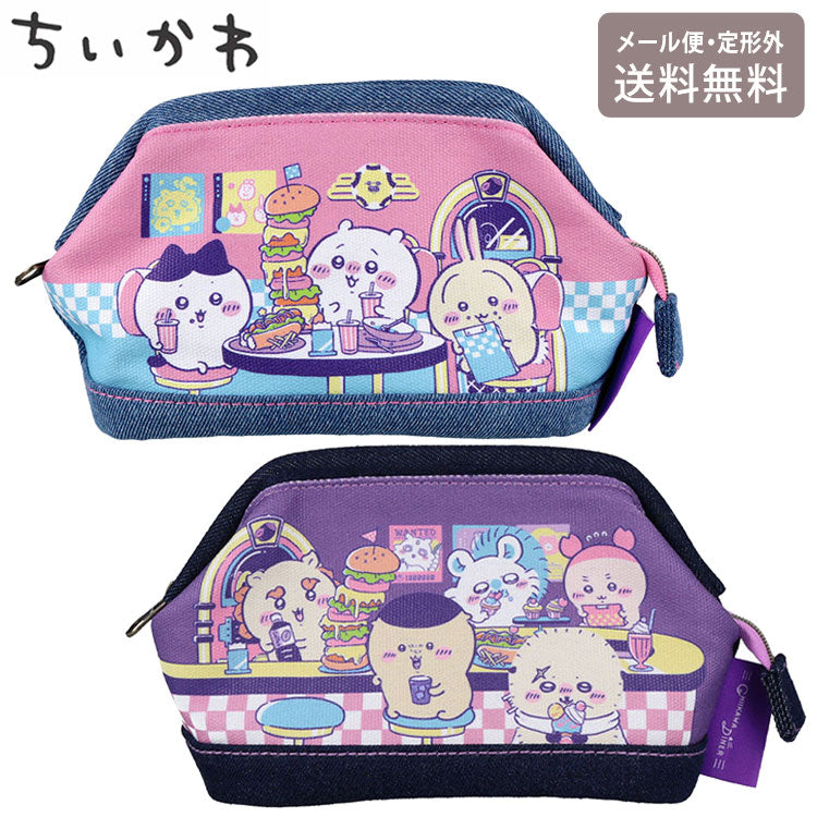 デニムペンケース ワイヤー入り ちいかわ DINER ランチ ディナー 定形外 送料無料 S1430262 S1430270 筆箱 ポーチ コスメポーチ ペンポーチ ハチワレ うさぎ くりまんじゅう ラッコ モモンガ シーサー 古本屋 ハンバーガー ホットドッグDINERランチ