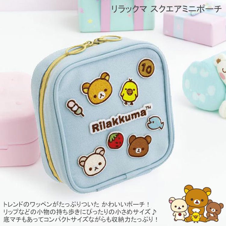 リラックマ スクエア ミニポーチ 定形外 送料無料 CA82601 ポーチ ワッペンシリーズ コリラックマ キイロイトリ チャイロイコグマ ワッペン 刺繍アップリケ