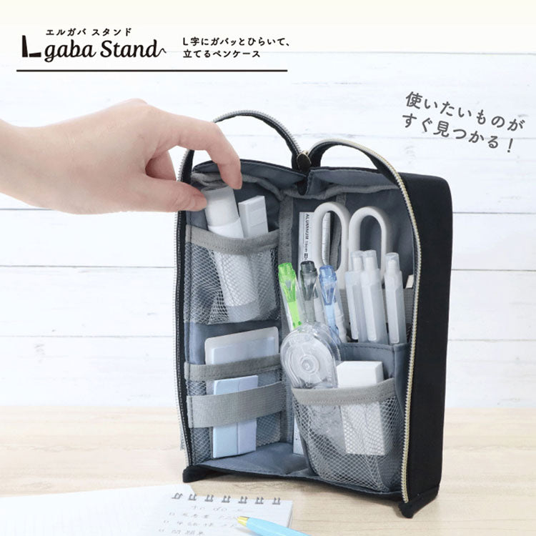 L字に大きく開いて使いやすい、スタンド型ペンケース。