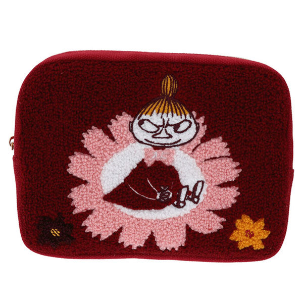 ふっくら立体的なサガラ刺繍で「ムーミン」の人気キャラクターをデザインしたポーチ。やわらかな手触りと温かみのある刺繍がポイントです。