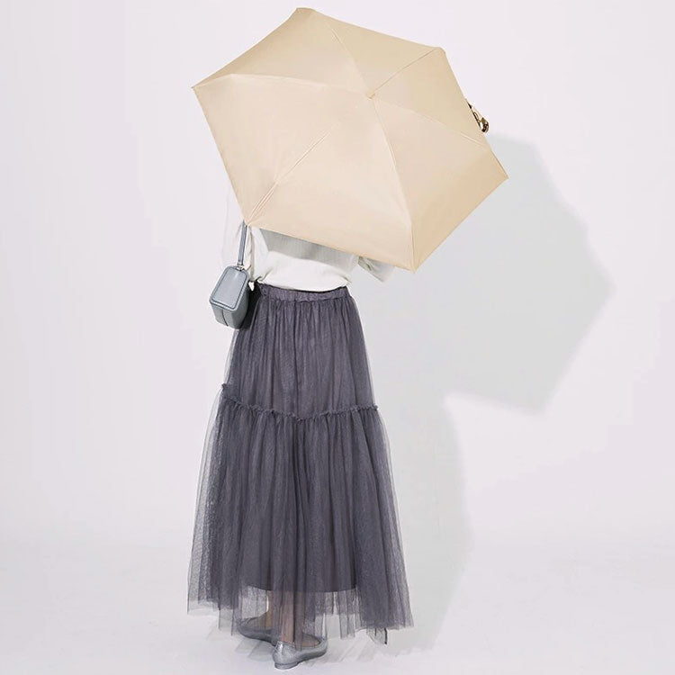 キュートな猫ポーチ付きの晴雨兼用ミニ傘。