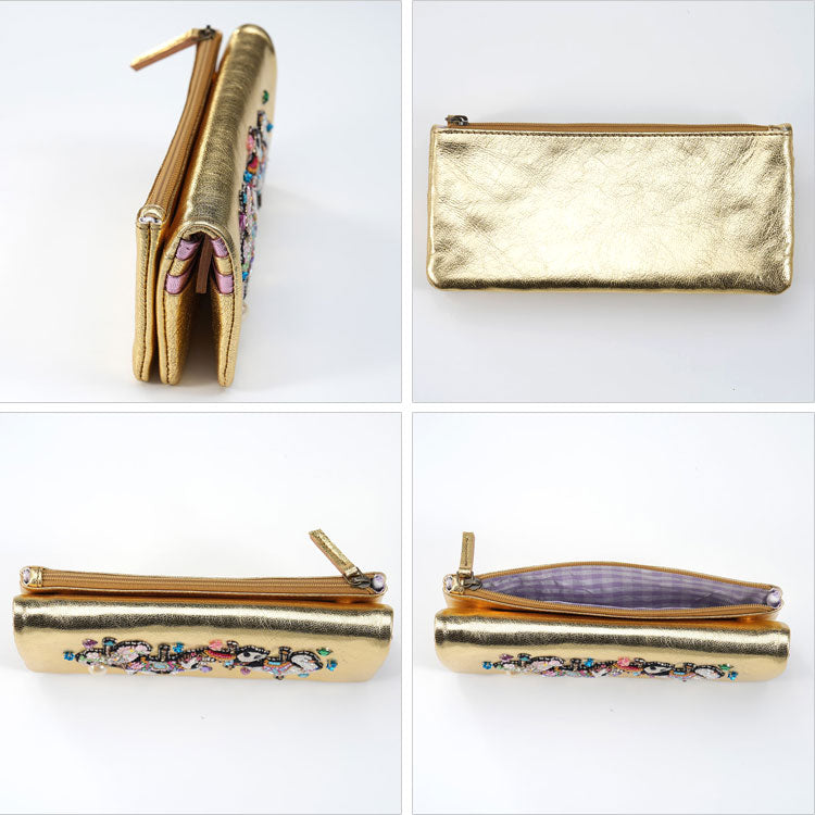 タマオワールド 長財布 Merry-go-round Gold メリーゴーランド ゴールド WAL3839 送料無料 刺繍 羊革 財布 メタリック キラキラ 大容量 パンダ 白鳥 白馬 タツノオトシゴ