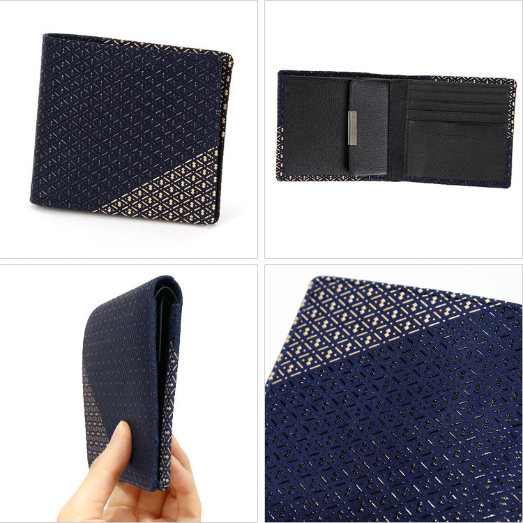 パンツやジャケットのポケットにも収まる二つ折りタイプのお財布です。