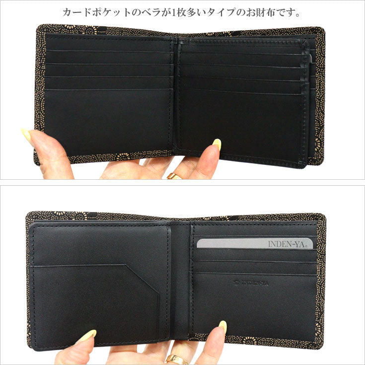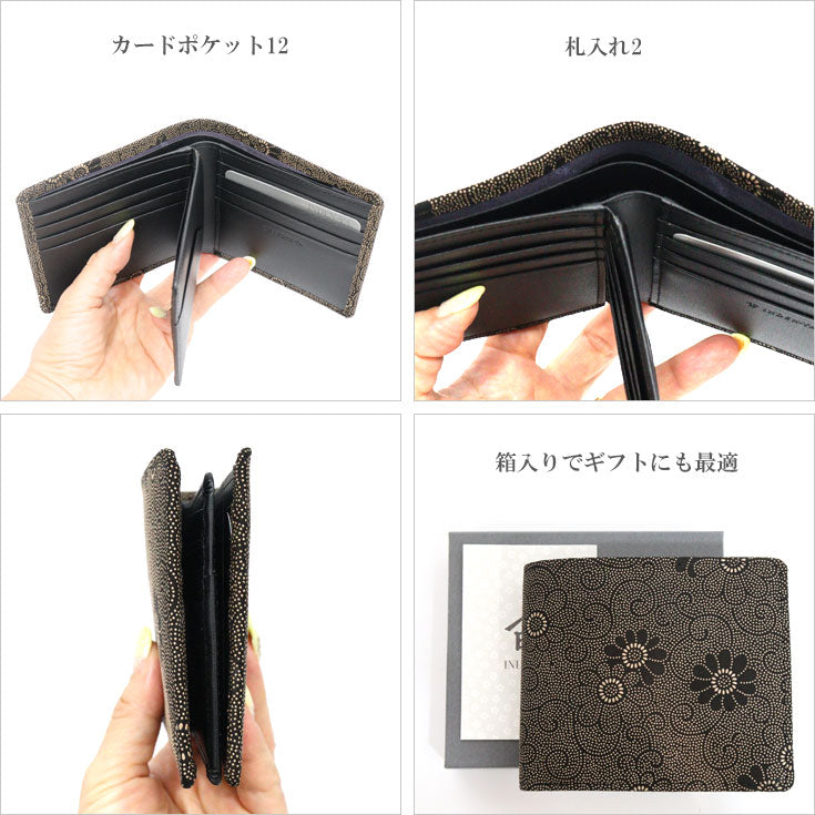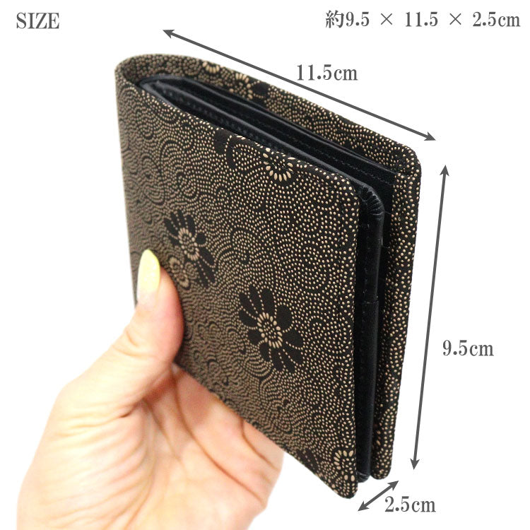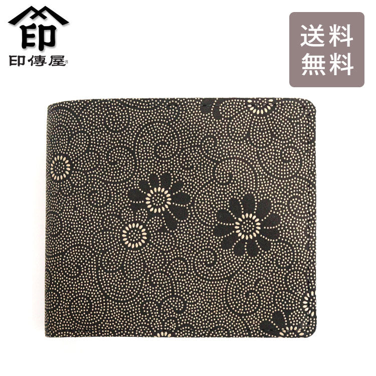 2つ折り財布 菊 黒地 白漆 印伝 2009 甲州印伝 本革 鹿革 牛革 和風 花柄 日本製 レザー レディース ブランド