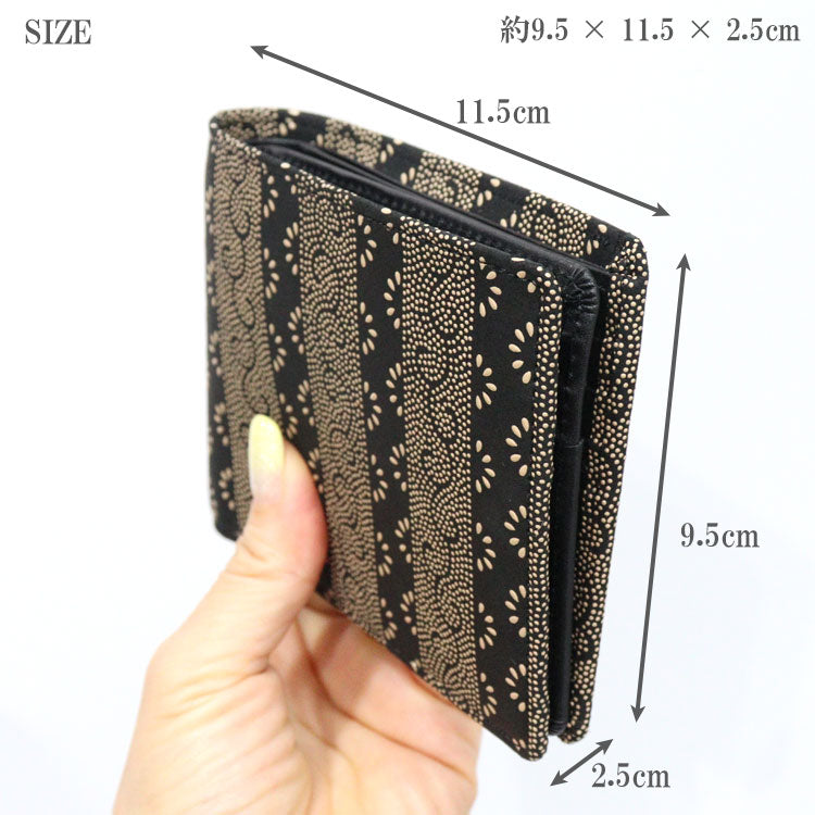 2つ折り財布 爪唐草 黒地 白漆 印伝 2009 甲州印伝 本革 鹿革 牛革 和風 花柄 日本製 レザー レディース ブランド
