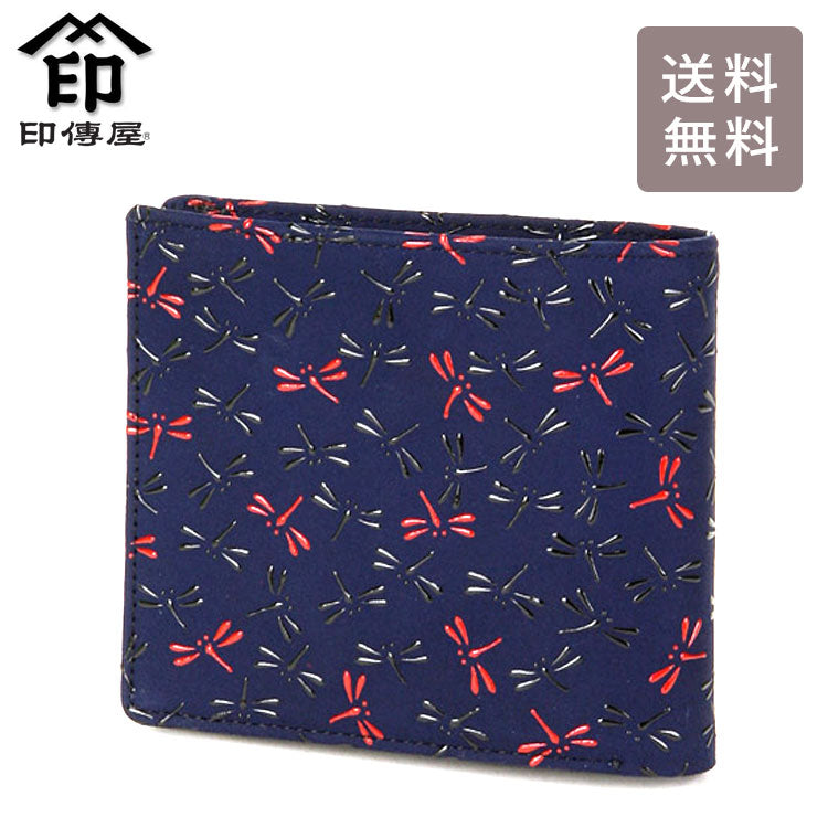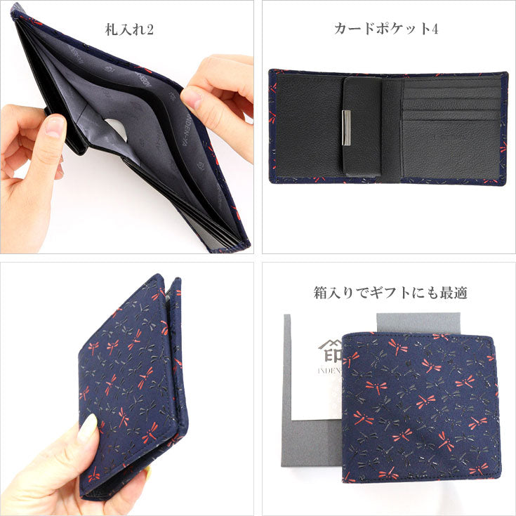 印伝 なごみ 7517 2つ折り財布 甲州印伝 トンボ柄 本革 鹿革 牛革 和風 花柄 日本製 レザー レディース ブランド