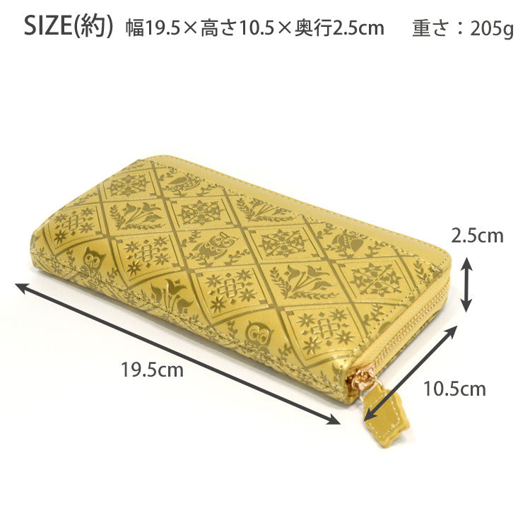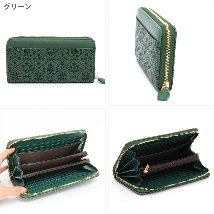 福ぶくろう 長財布 ふくろう ラウンドファスナー 財布 定形外 送料無料 金運 風水 縁起物 ゴールド グリーン 和風 和柄 フクロウ 梟 ゴールド