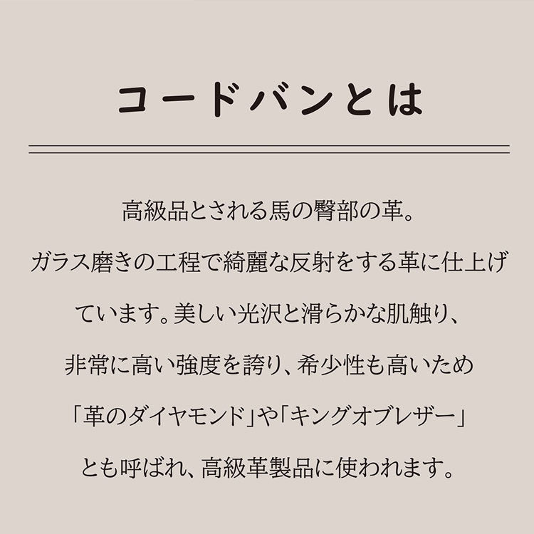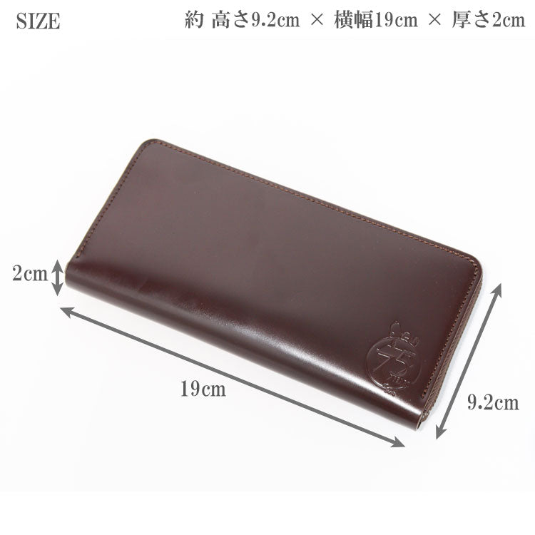 高級馬革「コードバン」を贅沢に使用した、上質感あふれるラウンドファスナー長財布です。