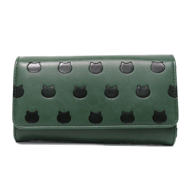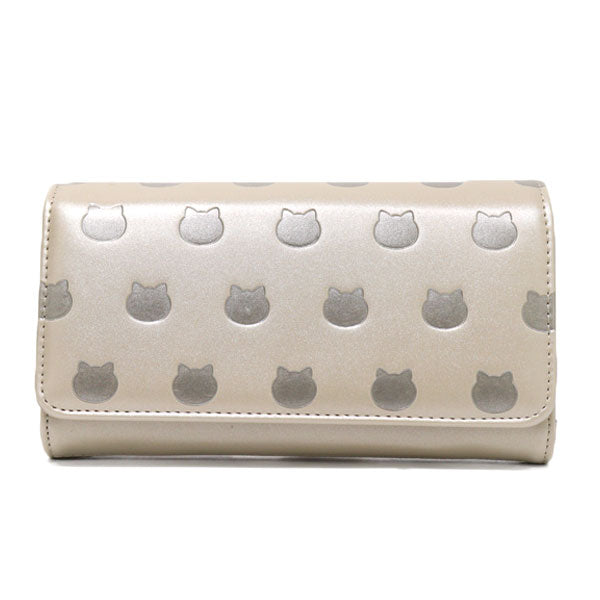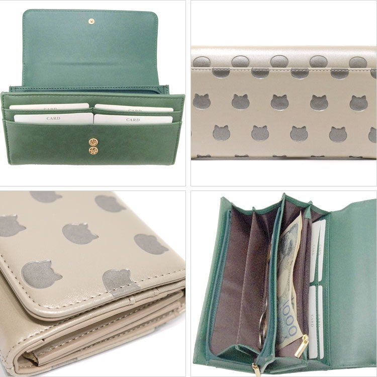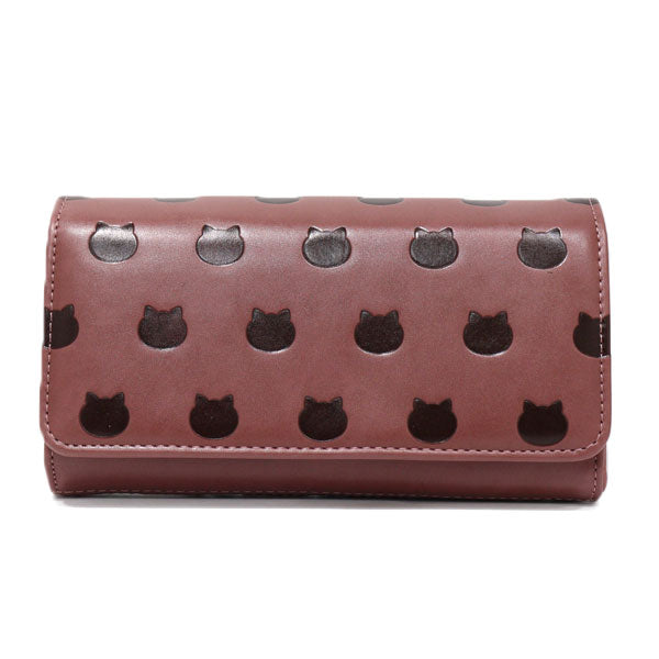 ねこねこぽこぽこ かぶせ長財布 定形外 送料無料 L字ファスナー 長財布 財布 合成皮革 ネコ 猫 型押し かわいい シンプル ブラウン