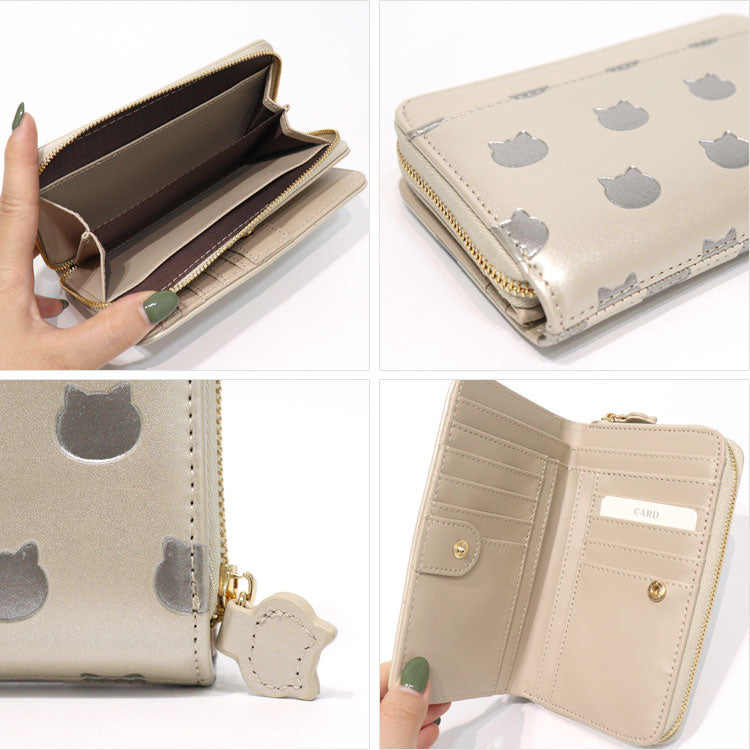 ねこねこぽこぽこ 2つ折り財布 定形外 送料無料 2つ折り 財布 合成皮革 ネコ 猫 型押し かわいい シンプル Wallet