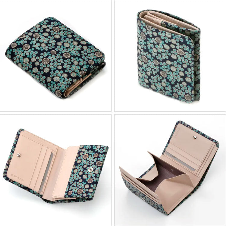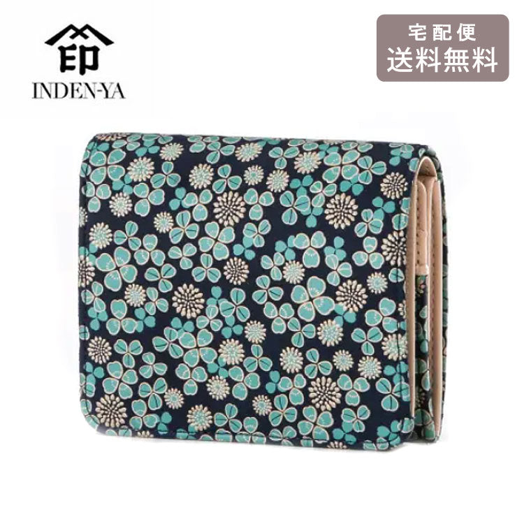 印傳屋 印伝 白詰草 二つ折り財布 7302 送料無料 財布 小銭入れ 三つ葉 四つ葉 花柄 札入れ ギフト レディース