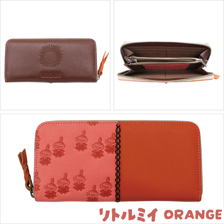 ナダヤ ムーミン 本革 ラウンドファスナー 長財布 PATTERN 82037 レディース メンズ 牛革 キャラクター ラウンド 北欧 スナフキン リトルミイ ニョロニョロ 型押し mm-007リトルミイ(オレンジ)