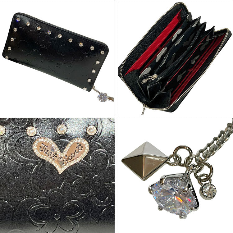 素材:表地/牛革、内側/牛革、裏地/コットン100%、引手/ジルコニア・ラインストーン、スタッズ/クリスタルガラス