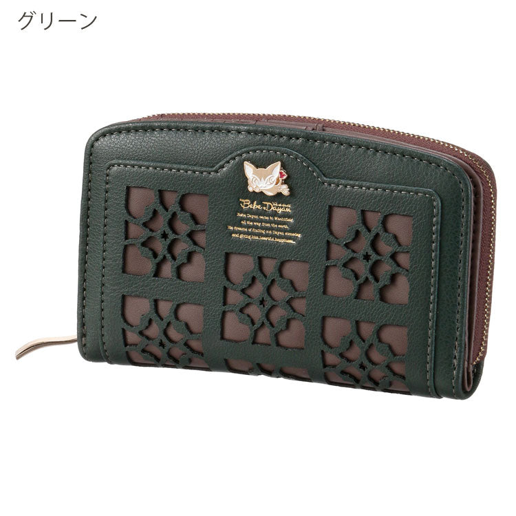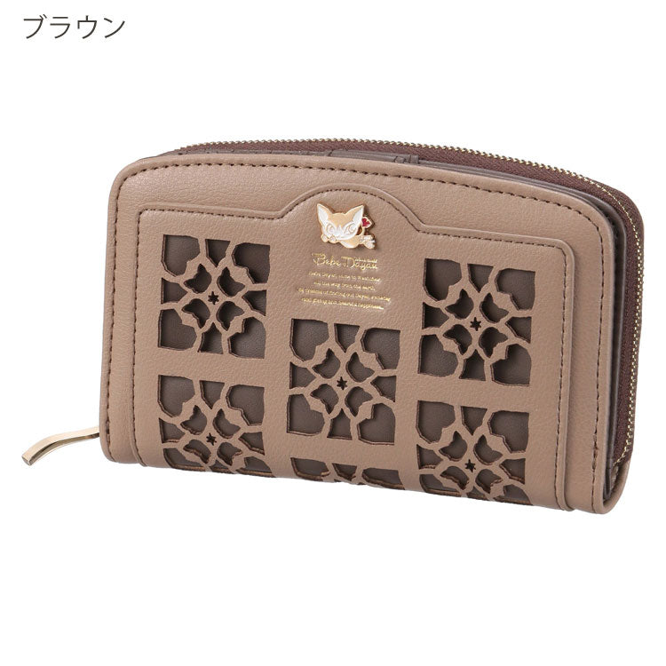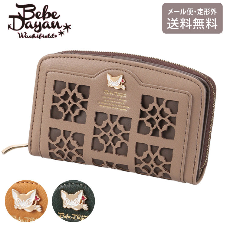 ベベダヤン 深折財布 財布 ラウンドファスナー わちふぃーるど 定形外 送料無料 猫 折り財布 二つ折り 大容量 合皮 レディース 幾何学模様 ダヤンブラウン
